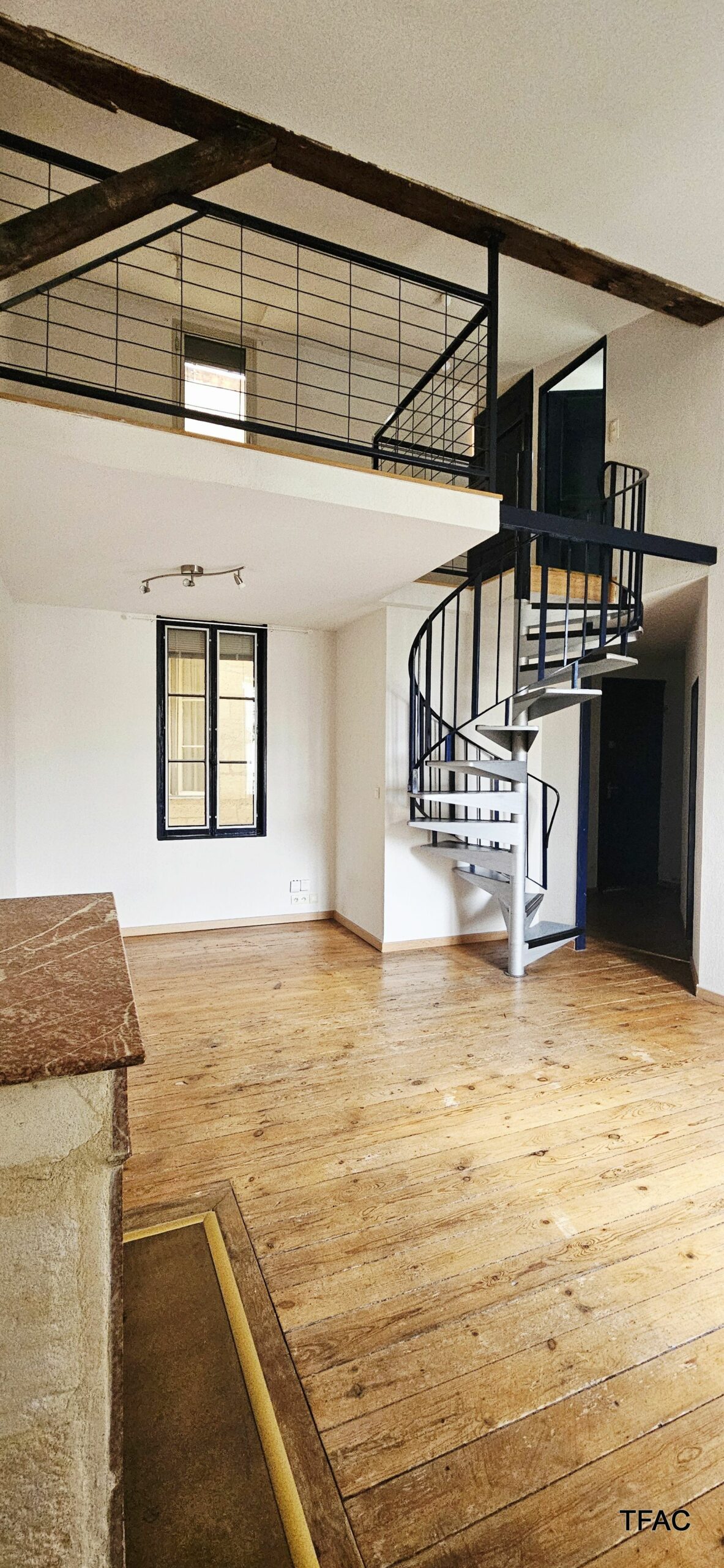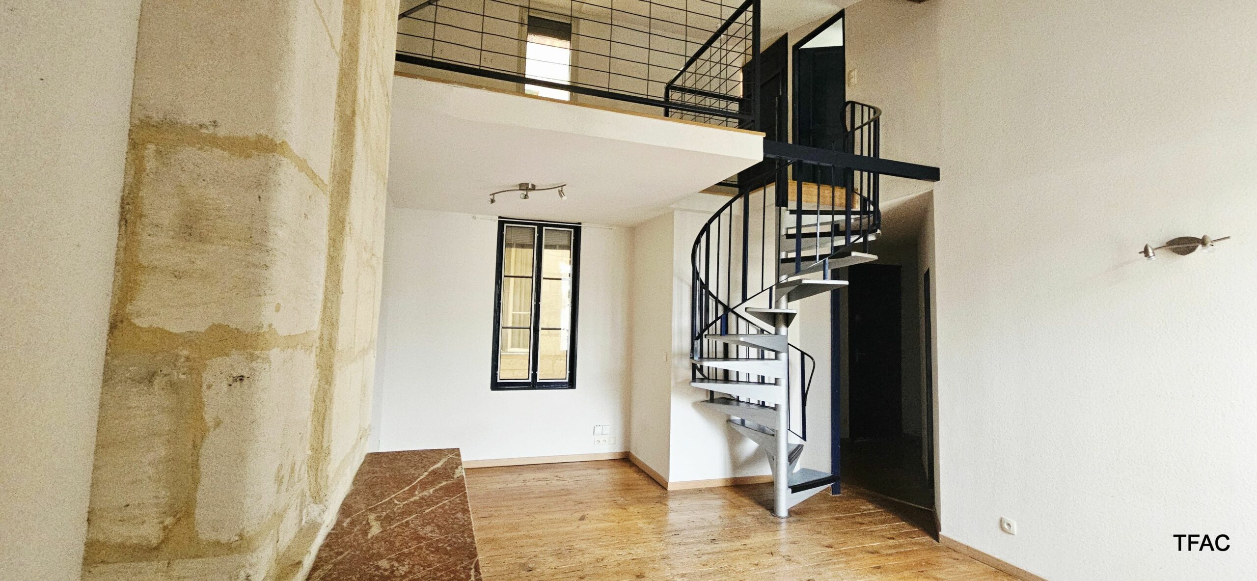 APPARTEMENT T2 BIS DUPLEX non meublé, à BORDEAUX, secteur Jardin Public/Chartrons/Paul Doumer, idéalement situé au deuxième (dernier) étage, coté jardin, d’un immeuble en monopropriété (5 logements au total), rue Albert Pitres, d’une superficie habitable de 53,34 m², comprenant, sur deux niveaux : entrée de 3.96 m², salon/séjour (18.04 m², cheminée marbre), chambre (9.68 m²) avec placard/penderie, cuisine (5.19 m²), toilettes (1.39 m²) ; coin repos/bureau (8.93 m² en mezzanine) avec placard buanderie, salle de bains (5,59 m², en mezzanine) avec placard et espace grenier.