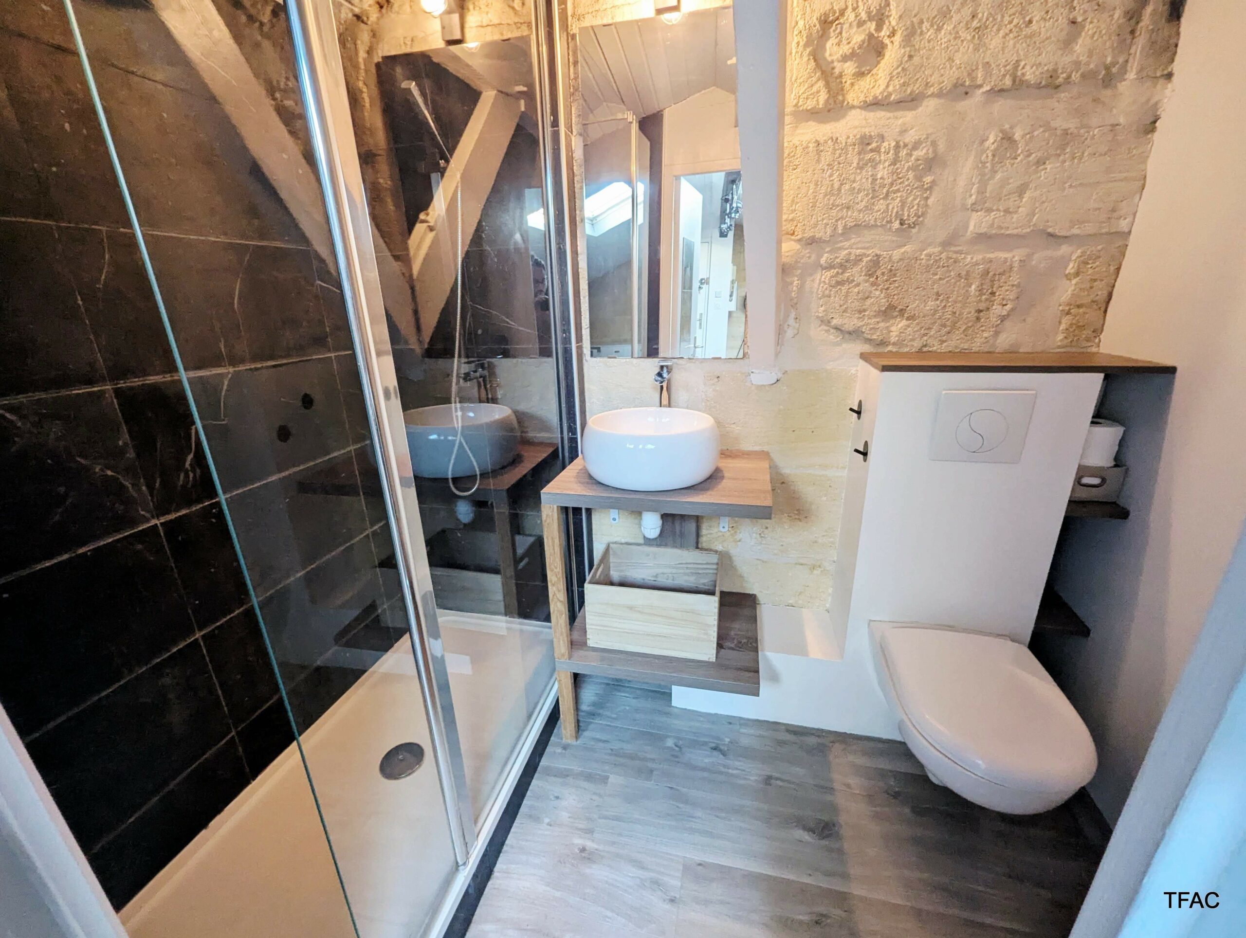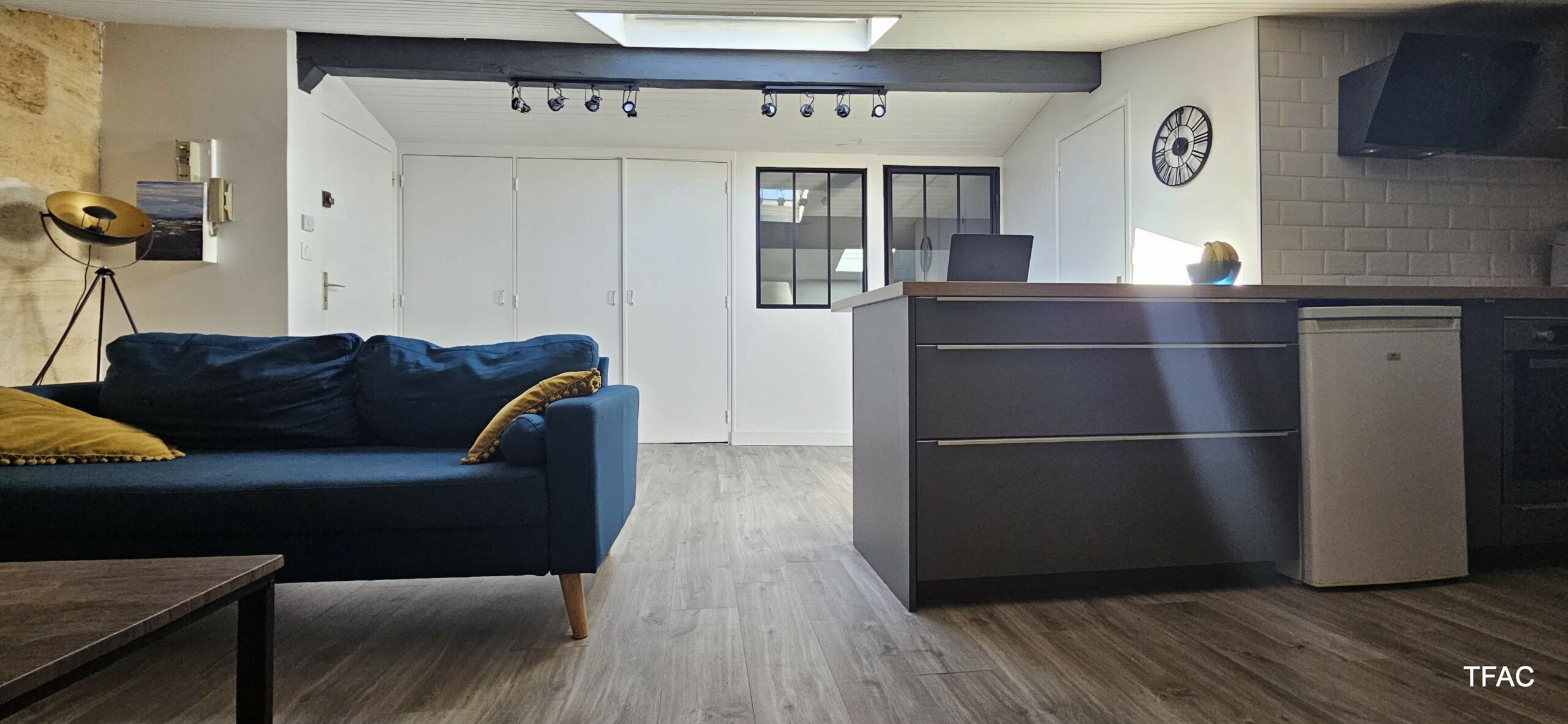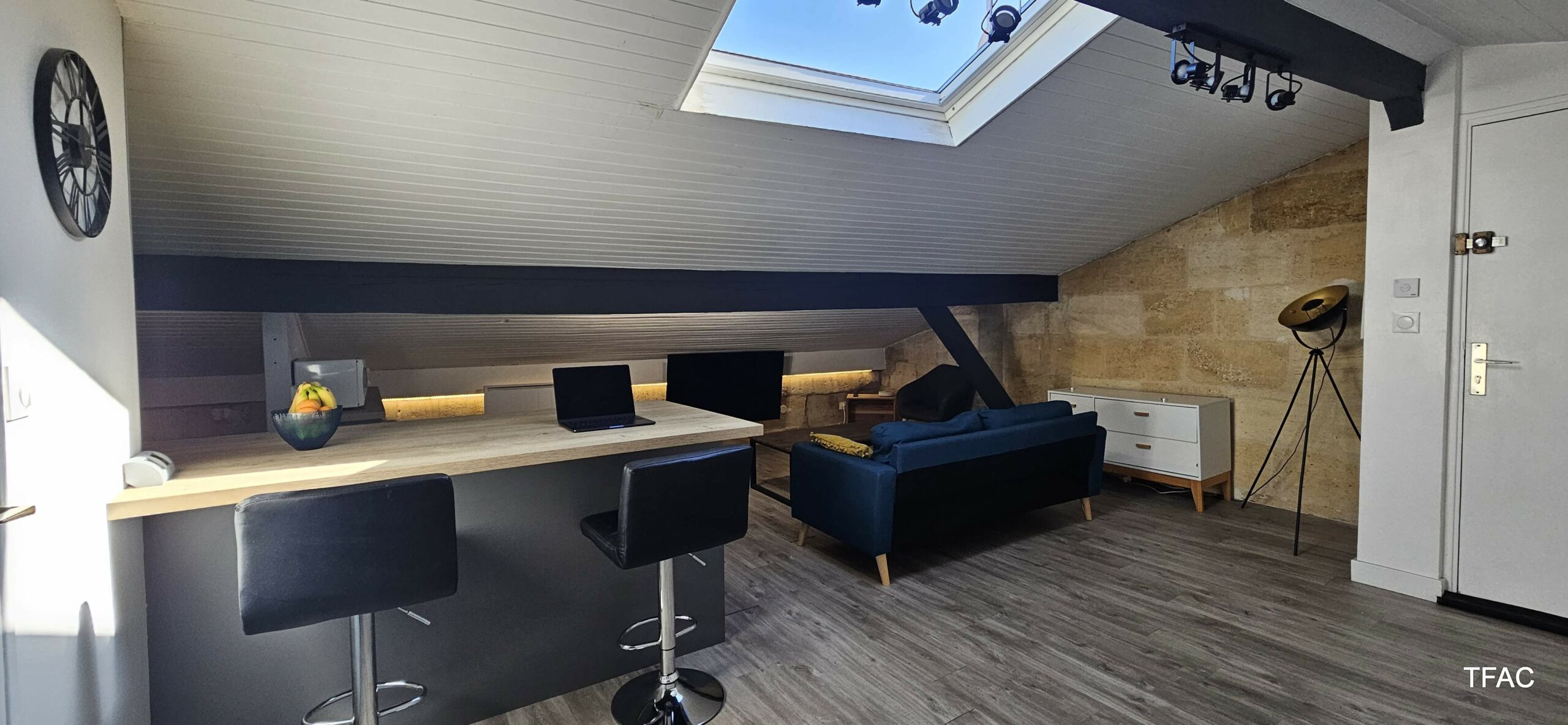 APPARTEMENT T1 BIS + CAVE, à BORDEAUX, secteur Palais de Justice/hôpital Saint-André, idéalement situé au deuxième et dernier étage d’un immeuble en copropriété, rue Lacornée, d’une superficie privative/Carrez de 25.88 m² (51.77 m² au sol), comprenant : pièce principale (18.49 m² carrez et 39,78 m² au sol) avec coin cuisine et buanderie (emplacement/branchement machine à laver), placard/penderie, coin repos (3.99 m² Carrez ET 8,59 m² au sol), salle d’eau (3.40 m² Carrez) avec toilettes.