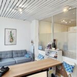 Rez-de-chaussée, un local professionnel, avec entrée privative directe depuis le domaine public – 52.47 m² comprenant une pièce d’accueil (27.83 m²), deux bureaux (11 et 9.70 m²), toilettes (0.94 m²) et réserve (3 m²). Compteurs électrique individuel. Absence d’amiante, présence de revêtements contenant du plomb au-delà des seuils en vigueur, absence d’anomalie électrique, absence d’indices d’infestation de termites, DPE en C-B (estimation des coûts annuels : entre 1 190 € et 1 630 € par an).