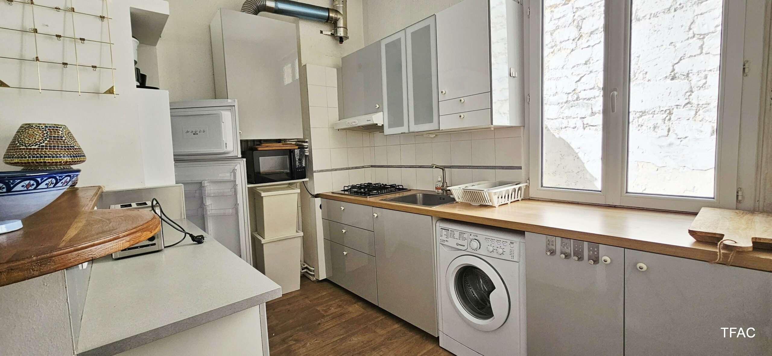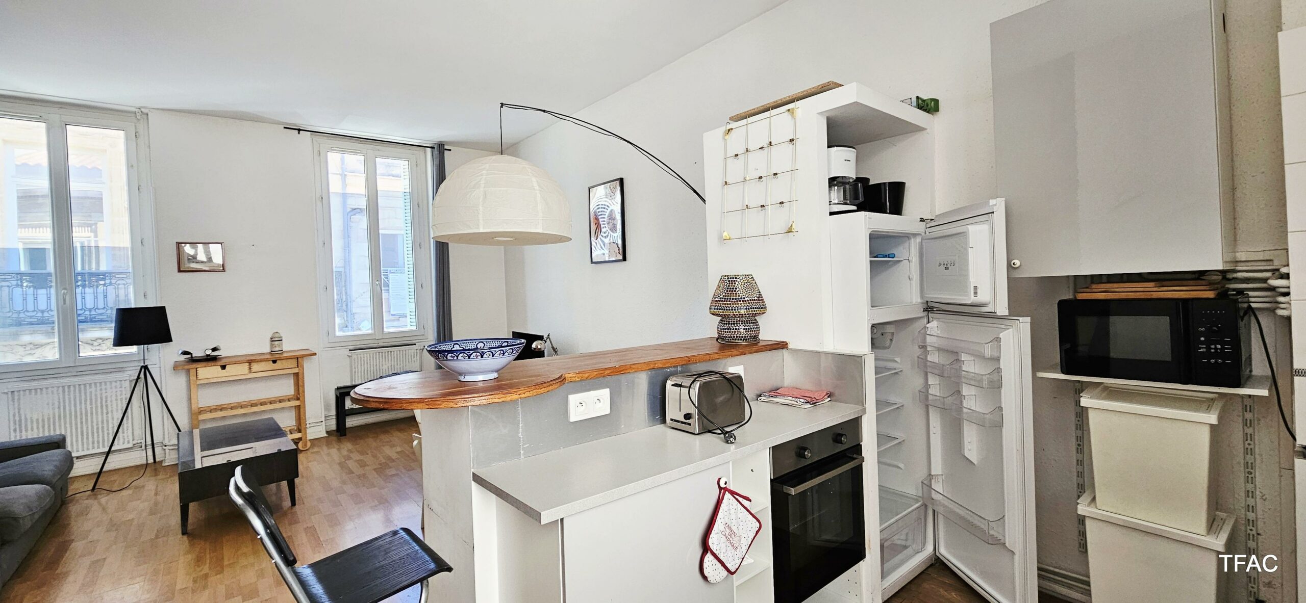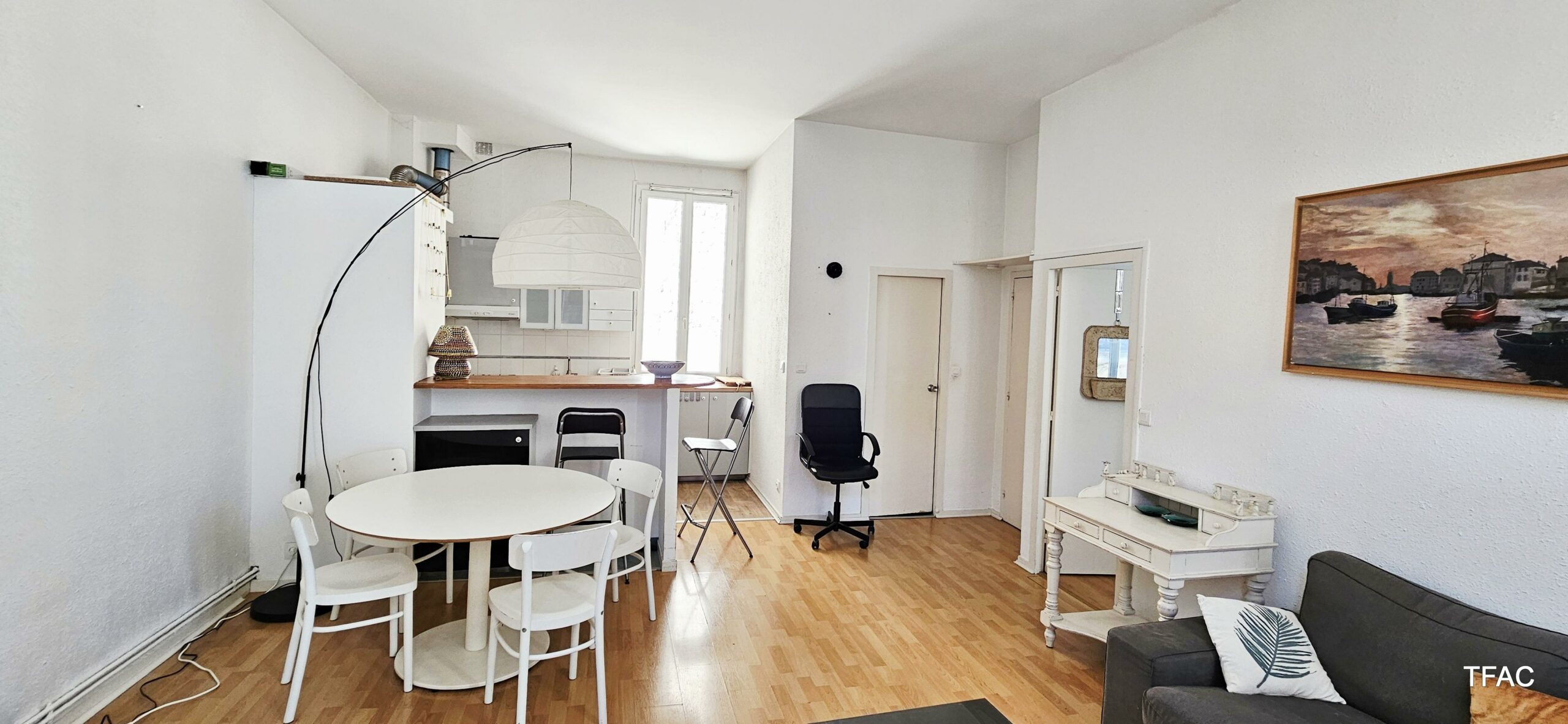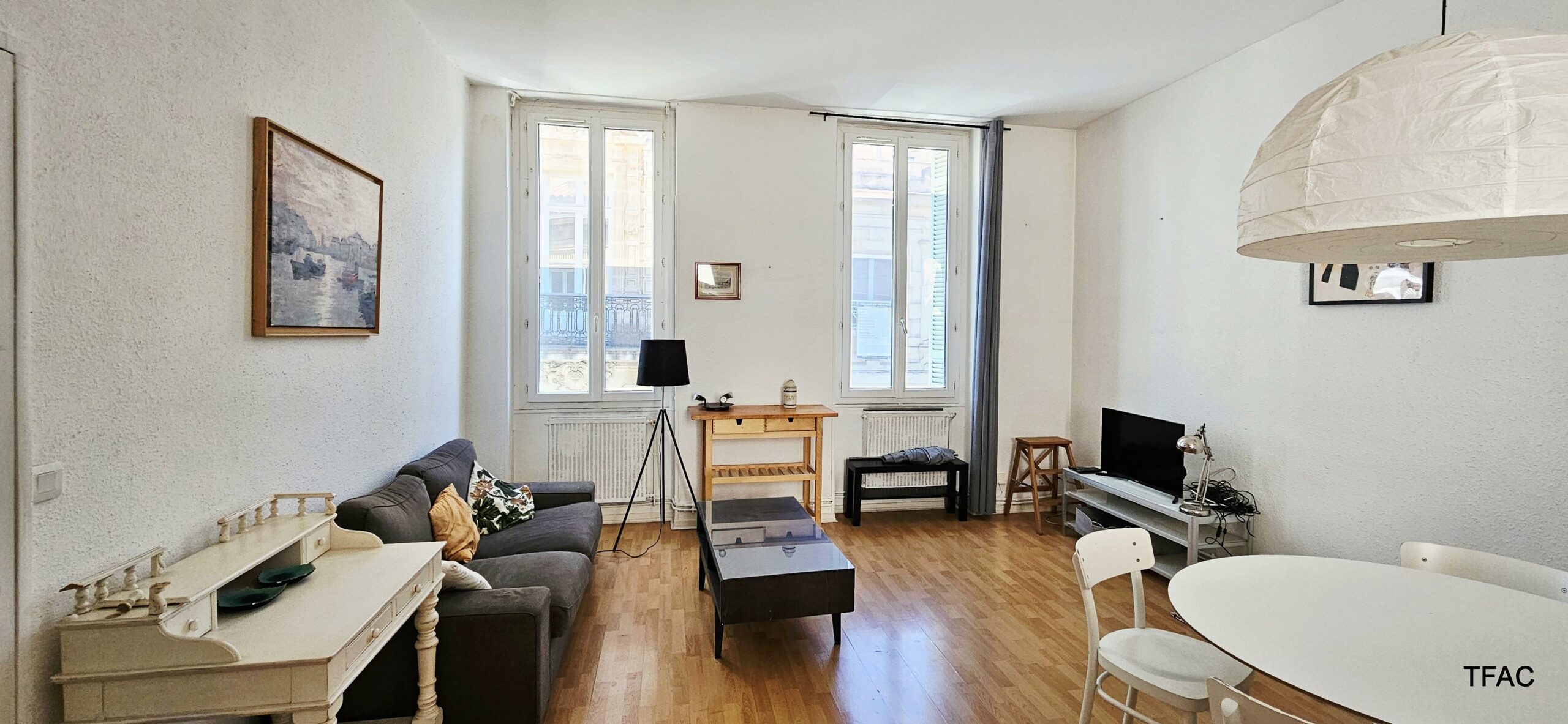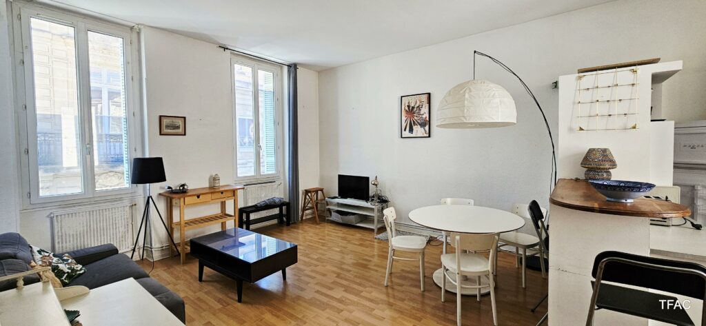 APPARTEMENT T2, à BORDEAUX, secteur Chartrons, place Picard, idéalement situé au premier étage d’un petit immeuble en copropriété (3 logements au total), rue Paul Berthelot, d’une superficie de 43.91 m², comprenant : salon/séjour de 30.30 m² avec cuisine américaine, chambre de 10.77 m², salle d’eau de 2.84 m² (douche et toilettes).
